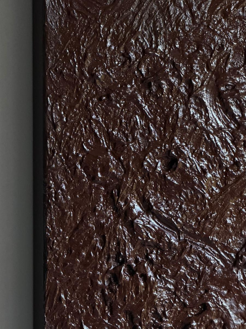 Ein zentrales Merkmal des Objekts ist seine reliefartige Oberfläche. Die Struktur ist nicht nur visuell präsent, sondern auch haptisch erfahrbar. Dadurch wirkt GAIA weniger wie ein klassisches Bild und mehr wie ein skulpturales Designobjekt.